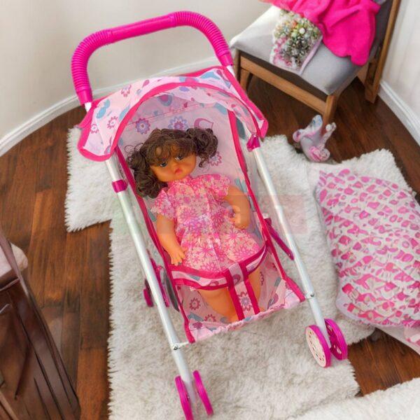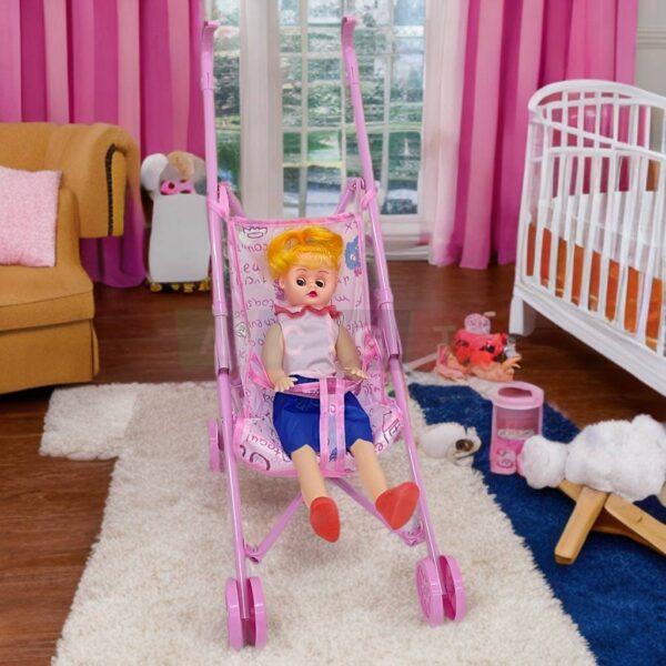 لعبة عرباية زهرية مع دمية للأطفال
