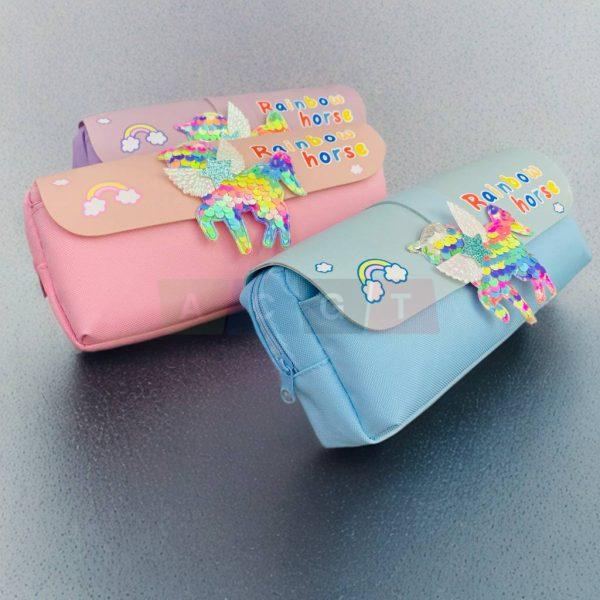 مقلمة بناتي قماشية برسمة حصان ملونة