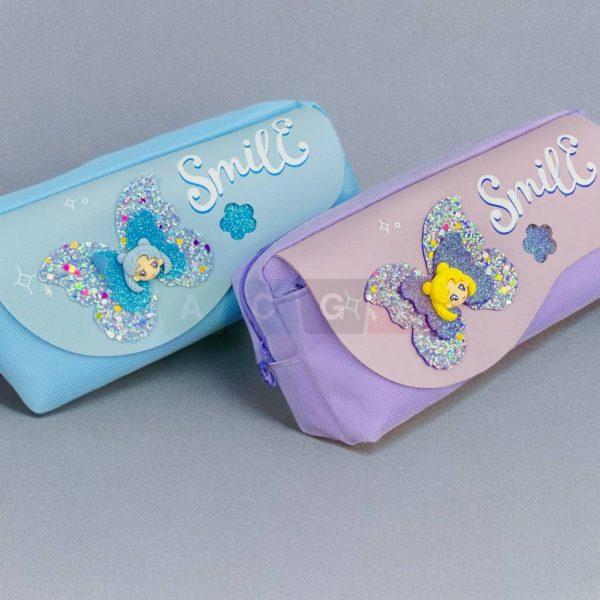 مقلمة بناتي قماشية بعدة طبقات مع مجسم فراشة على الجانب