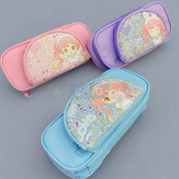 مقلمة بناتي قماشية بعدة طبقات مبرقة مع رسومات كرتونية