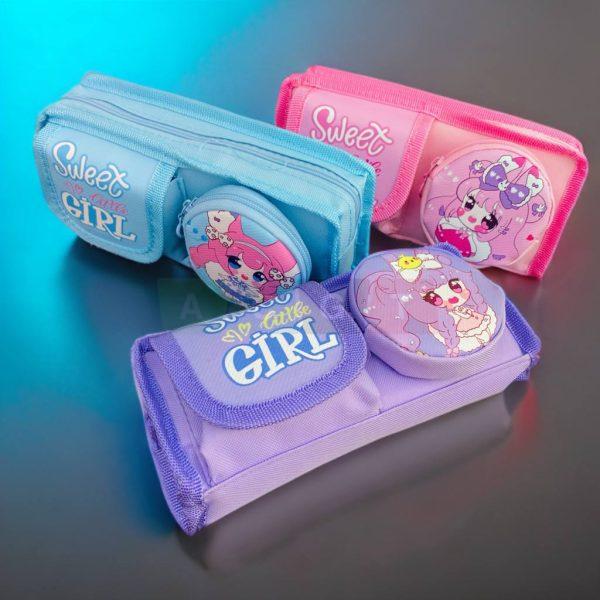 مقلمة بناتي قماشية مع مدالية جانبية