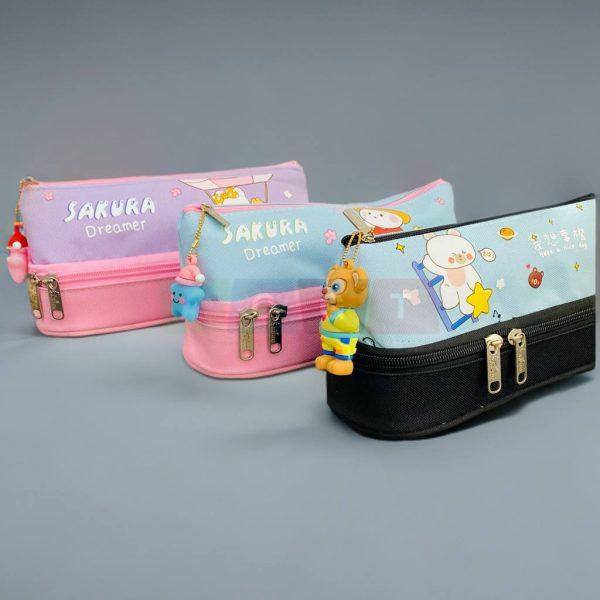 مقلمة بناتي قماشية بعدة طبقات مع رسومات كرتونية