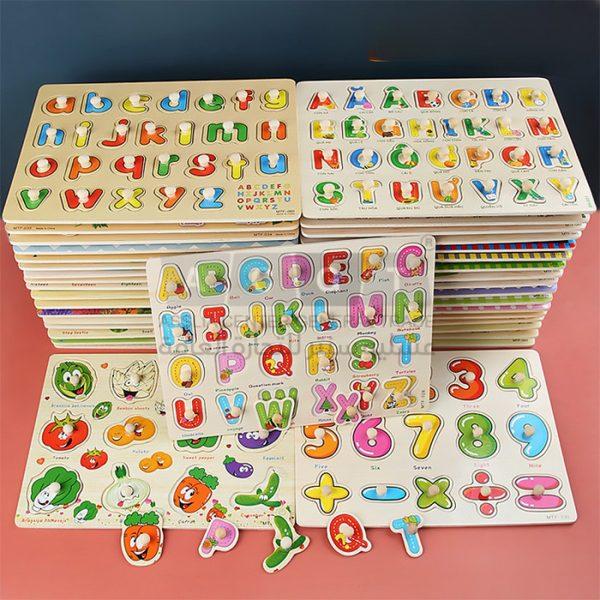 بزل خشب تعليمية مع لوح وايت بورد بالخلف