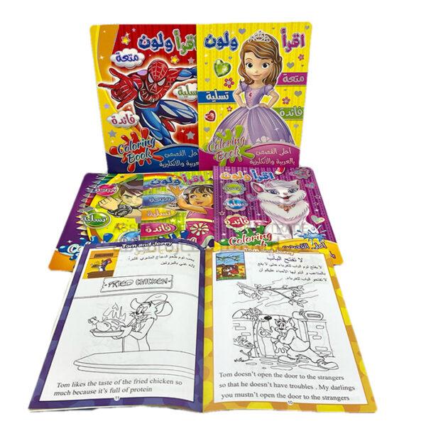 دفاتر تلوين مع قصة باللغتين العربي والانجليزي