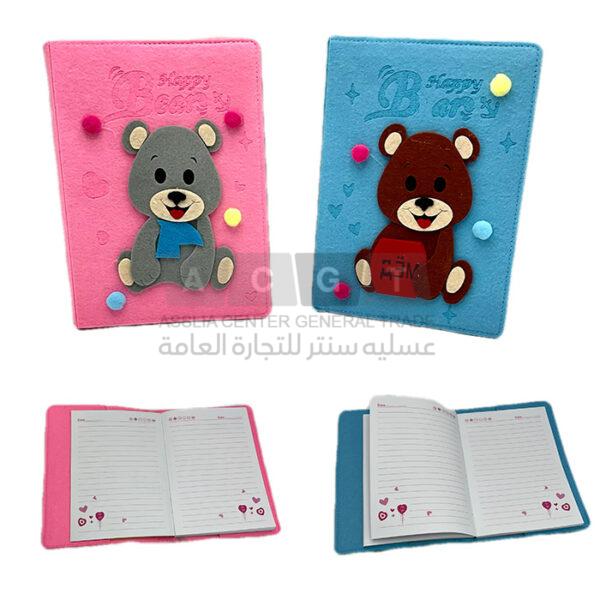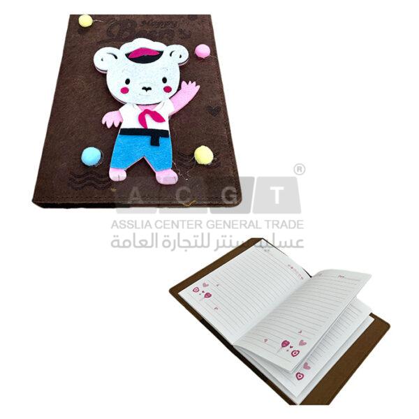 دفتر ملاحظات بغلاف من قماش ورسمة دب