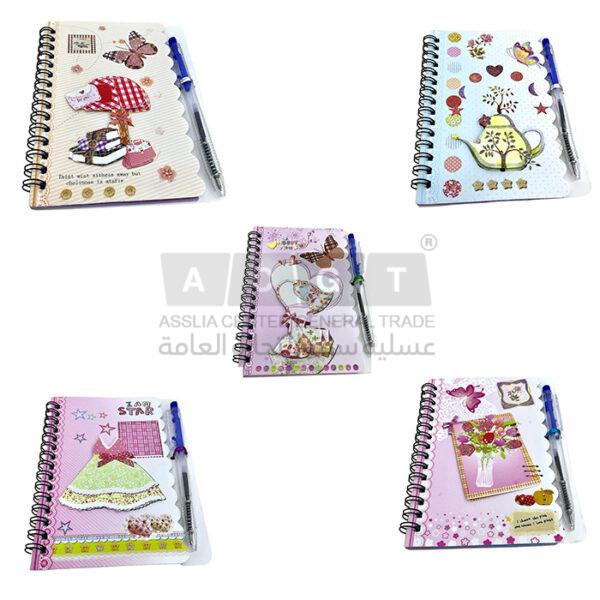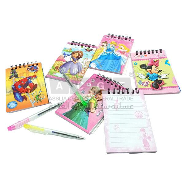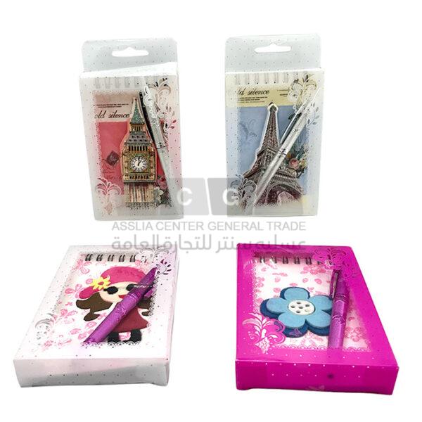 دفتر ملاحظات صغير الحجم مع قلم وربطات إضافة إلى طبع