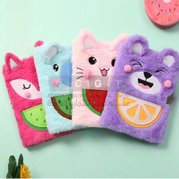 دفتر ملاحظات بغلاف من فرو ورسمة بطيخ