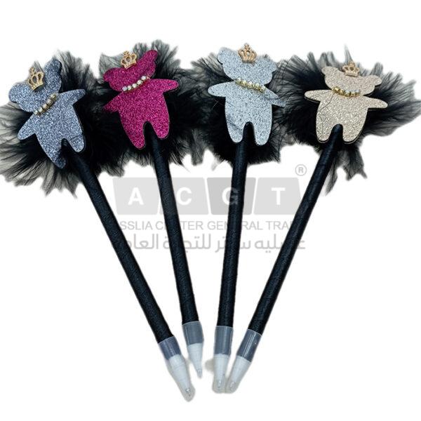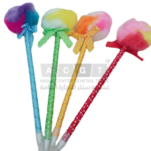 أقلام حبر ملونة مع كرة من الفرو بالأعلى
