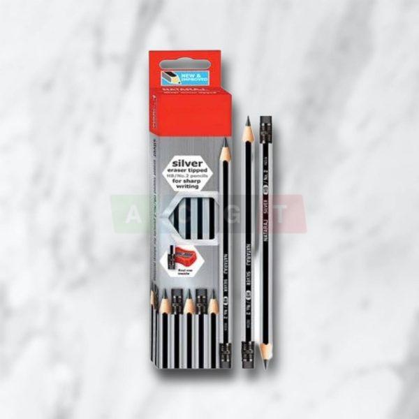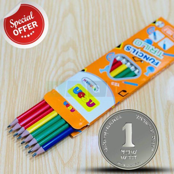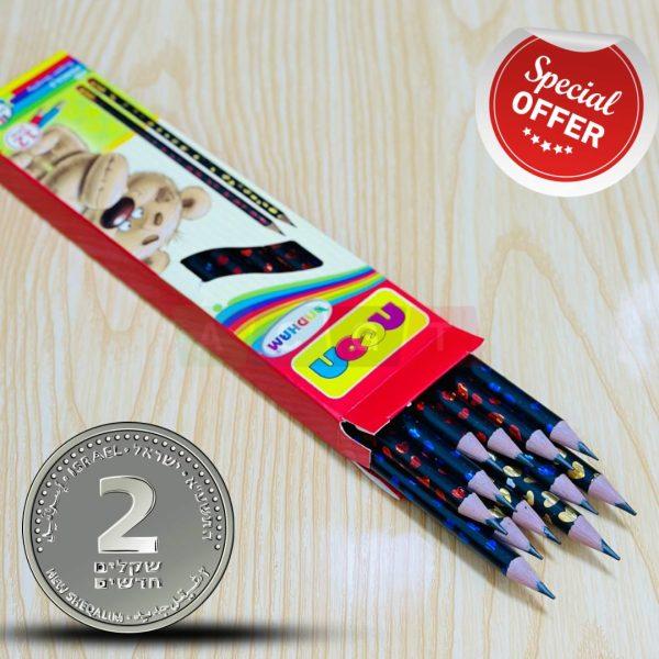 علبة أقلام رصاص من neon مع ممحاة باللون الأسود