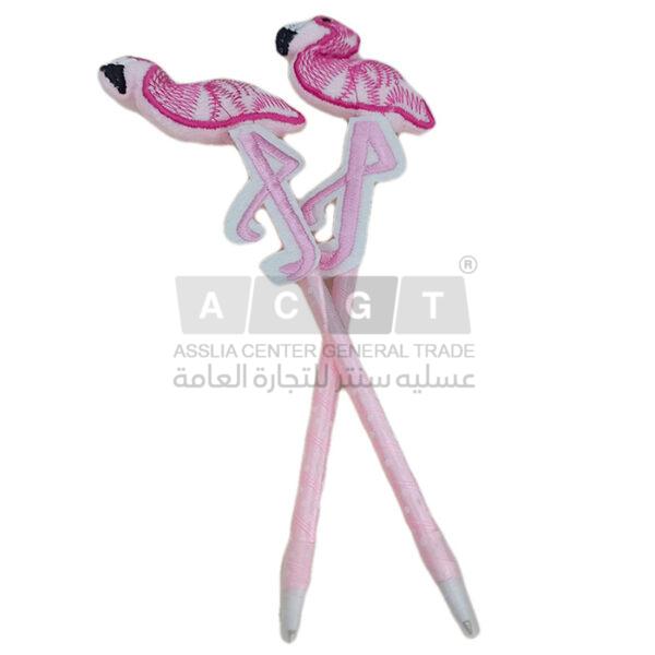 قلم حبر أزرق اللون مع رأس عليه فلامنجو