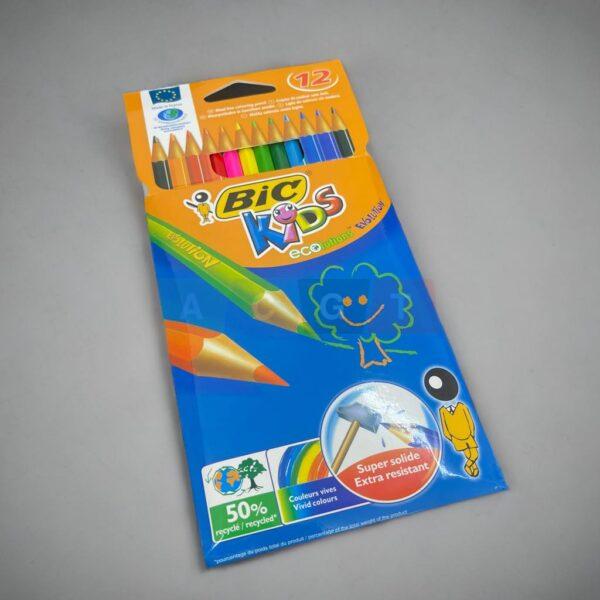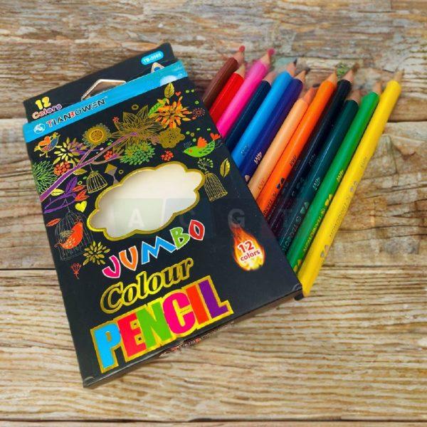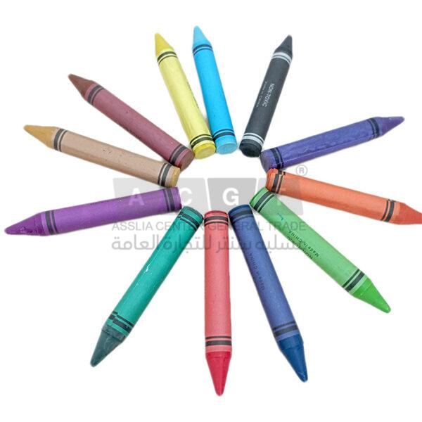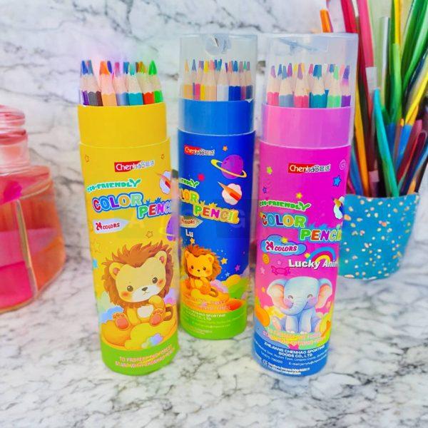 ألوان خشبية بعلبة كرتون مرسمة بأشكال ورسومات كرتونية