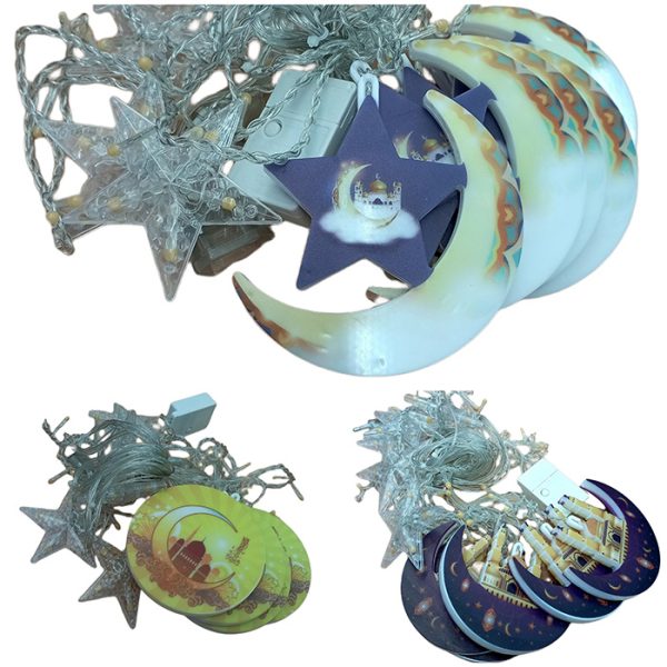 حبل إضاءة رمضان نجوم مع مجسمات بلاستيكية مرسمة