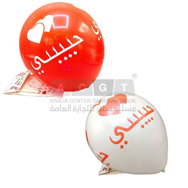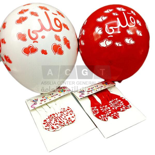 بالون أحمر اللون شكل قلب بكتابات متنوعة