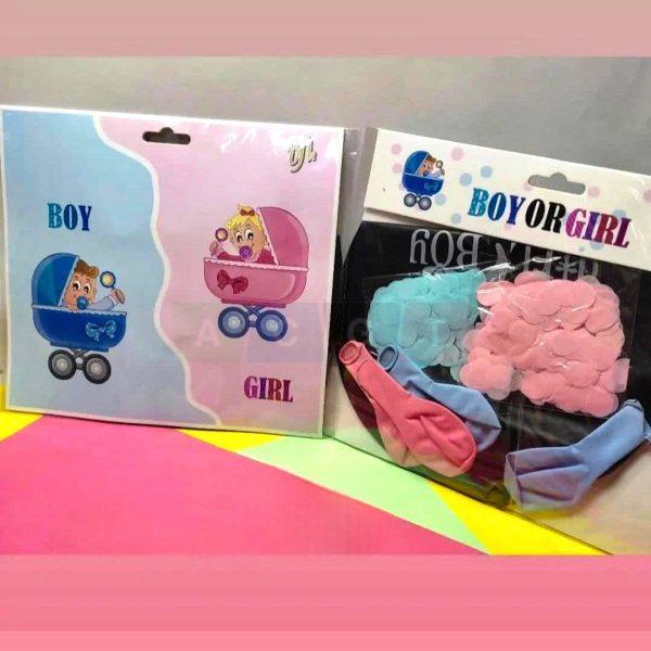 بالون تحديد جنس المولود مع بلالين أزرق وزهري