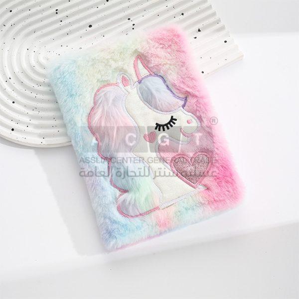 - مصمم بغطاء فرو ملون برسمة يونيكورن