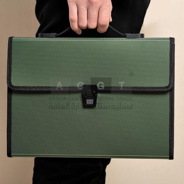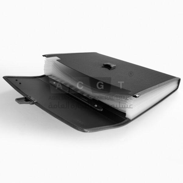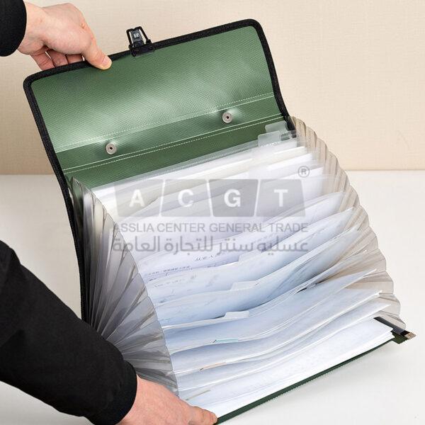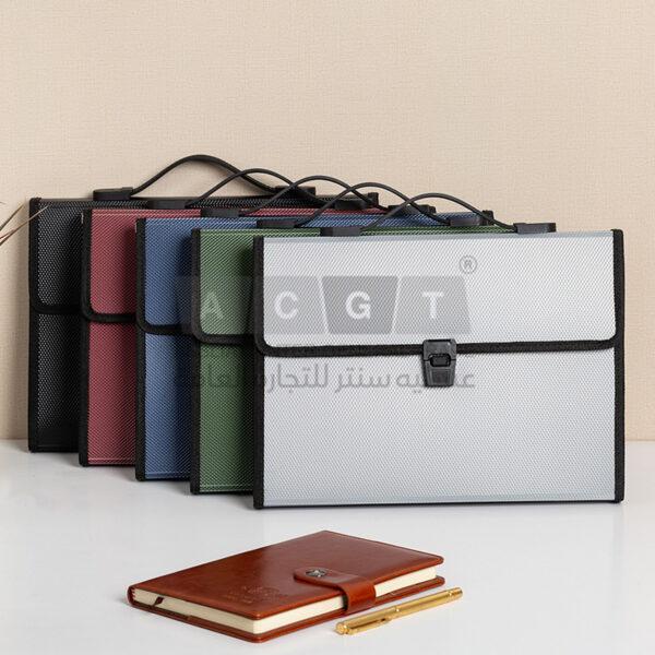 - دوسيه بلاستيك مصممة شكل حقيبة بداخلها فايلات شفافة مع يد من الأعلى للمسك