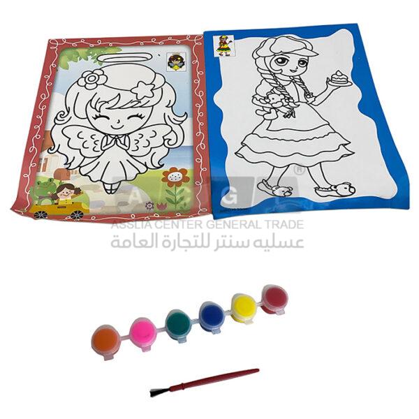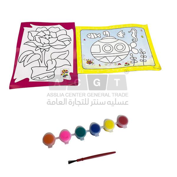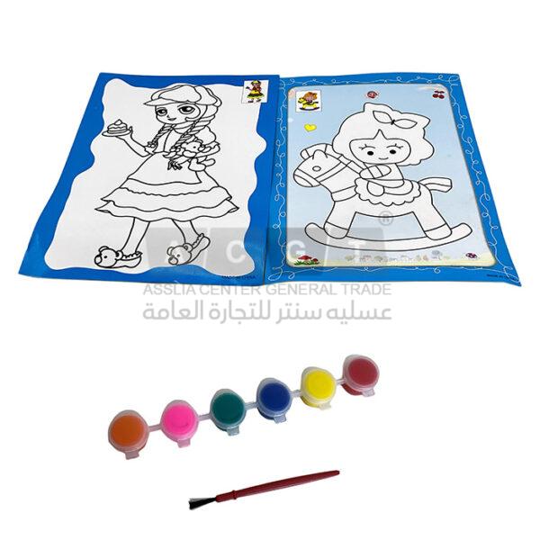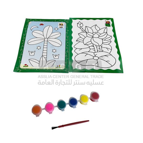 بالإضافة الى علبة ألوان مائية وريشة تلوين