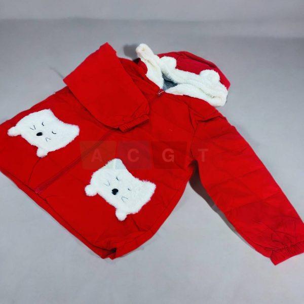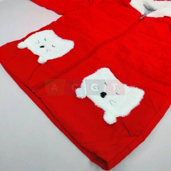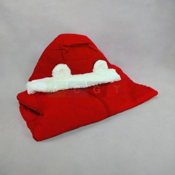سترة أطفال شتوية مع طاقية قماش ناعمة فرو باللون الأحمر