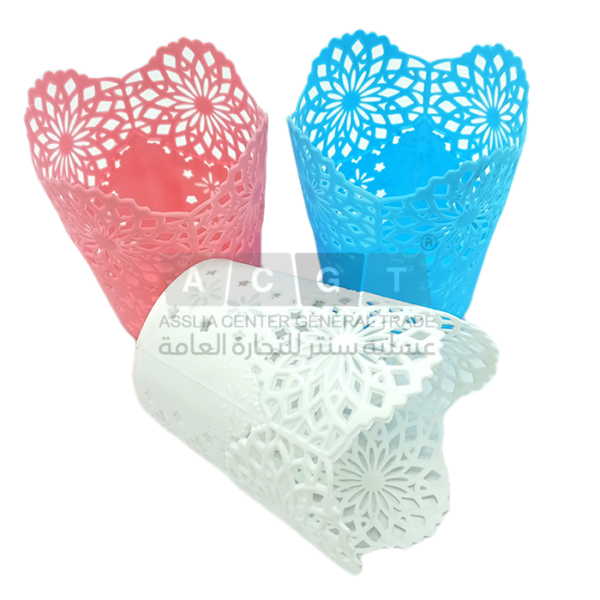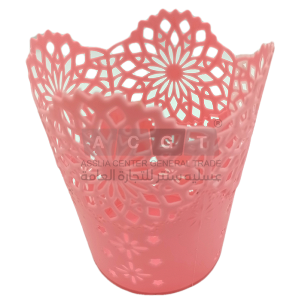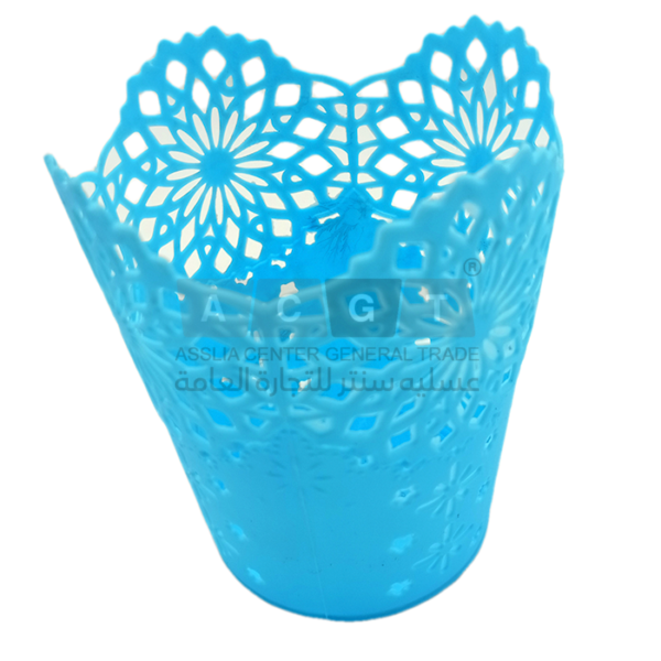 سلة بلاستيك مخرمة بفتحات على أشكال ورد