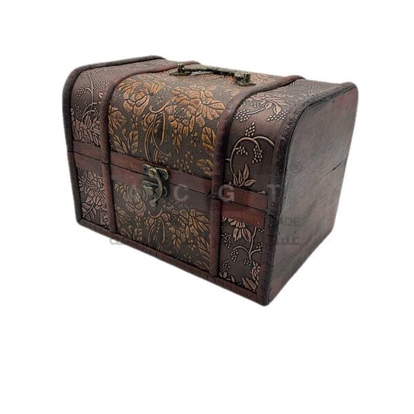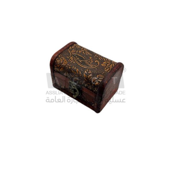 - صندوق خشب باللون البني بزخرفات من ورد