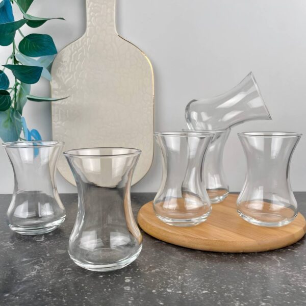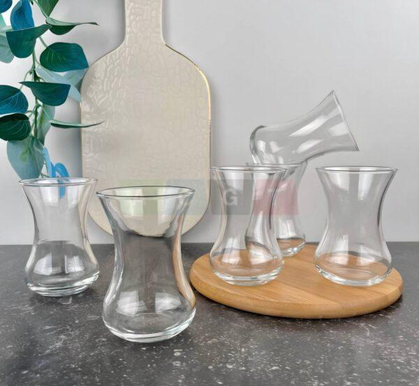 طقم استكانات شاي أنيق مصنوع من الزجاج الشفاف