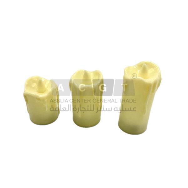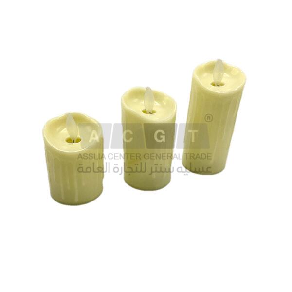 - شمع بلاستيك الكتروني يعمل على البطارية باللون البيج يضيء باللون البرتقالي ذات شكل يشبه الشمع الذائب