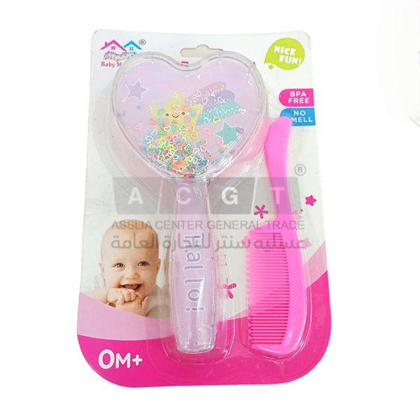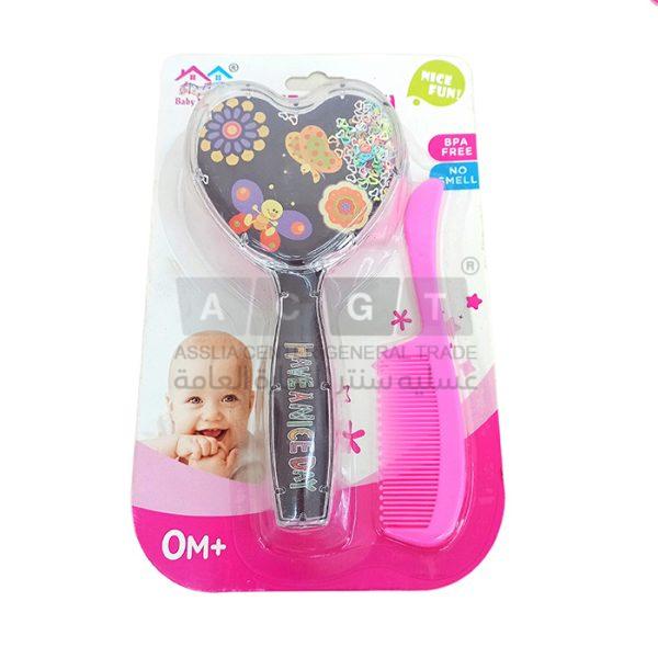 طقم مشط مع فرشاه للأطفال على شكل قلب مع برق