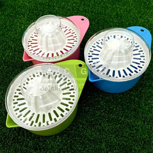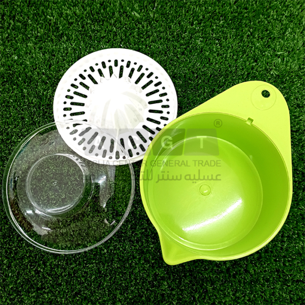 - عصارة مصنوعة من البلاستيك مع غطاء شفاف اللون