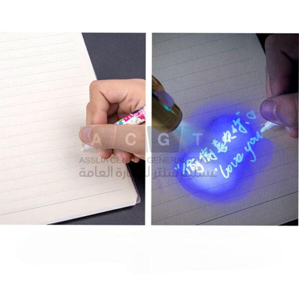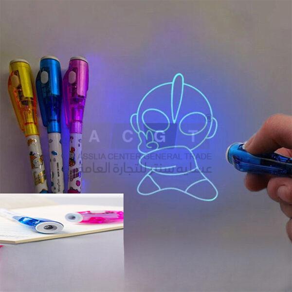 قلم حبر سحري باللون الأبيض مع ضوء من اعلى القلم