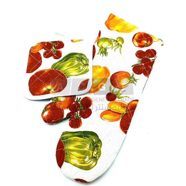 كمية كفوف طويلة مطبخ مع مساكة من القماش