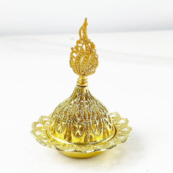 مبخرة ذهبية اللون صغيرة مع يد شكل مرسمة