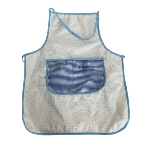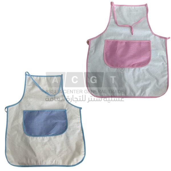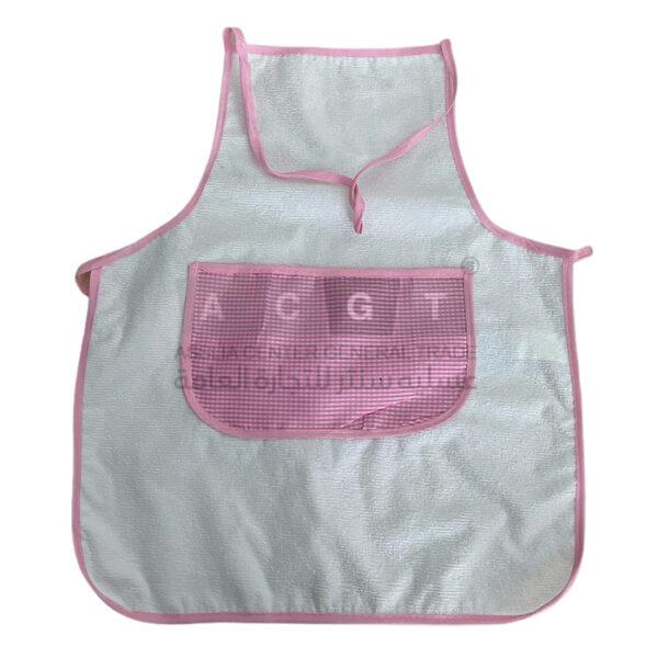 مريول قماش باللون الأبيض للأطفال مع جيبة على المريول بأللوان