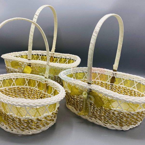 سلات قش بيضاوية الشكل بعدة أحجام لون ذهبي