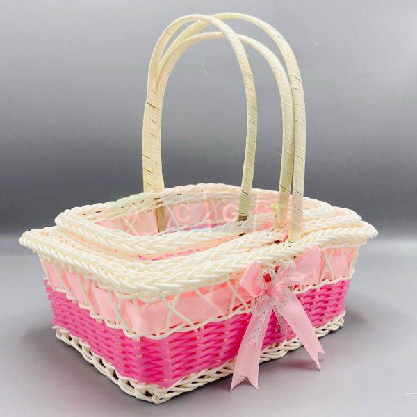 سلات قش مربعة الشكل بعدة أحجام لون زهري