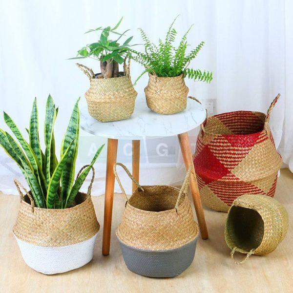 سلات قش لقواوير النباتات مع أيدي حجم صغير