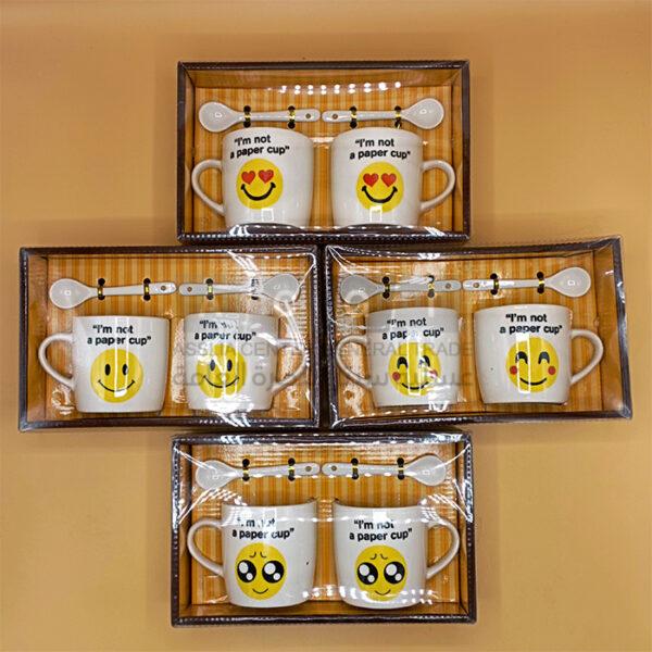 طقم مجات بورسلان مرسم بالسمايلات متوسطة الحجم
