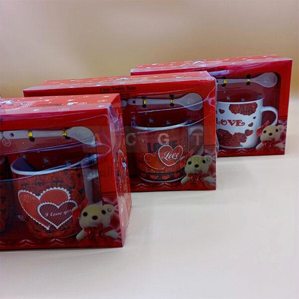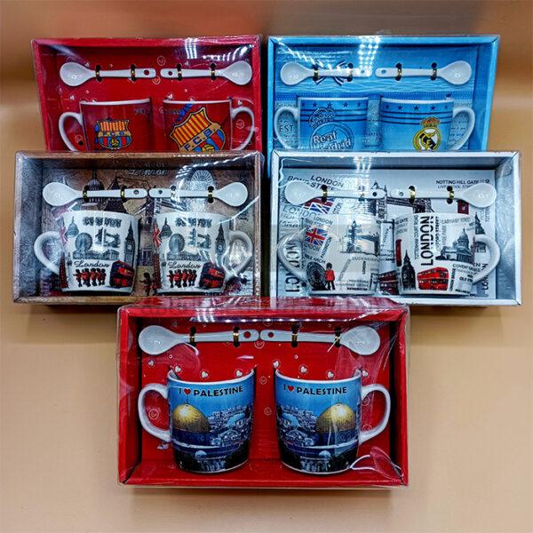 طقم مجات بورسلان مع ملعقة متوسطة الحجم