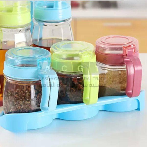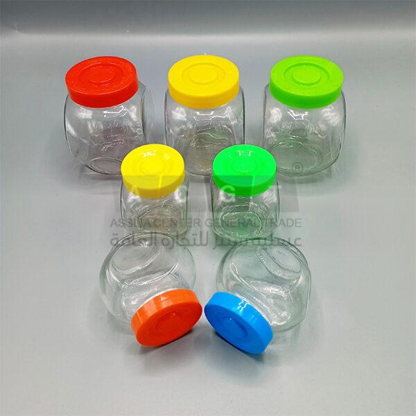 طقم مرطبانات شفاف ذو أغطية بلاستيكية ملونة