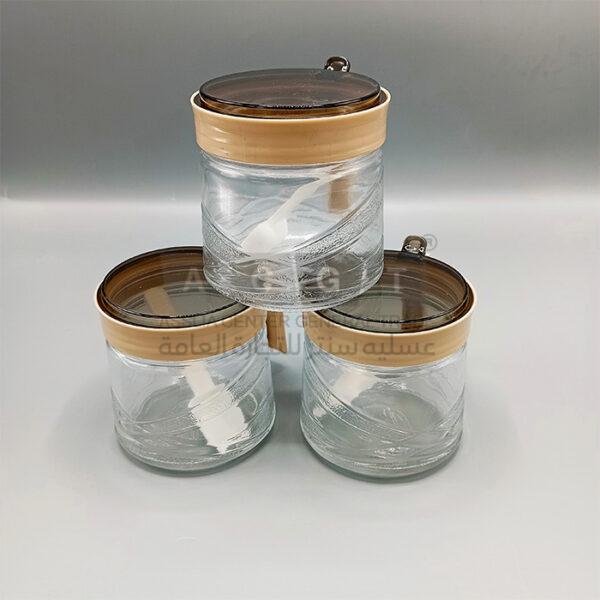 طقم مرطبانات زجاج مع غطاء خشبي ضغط