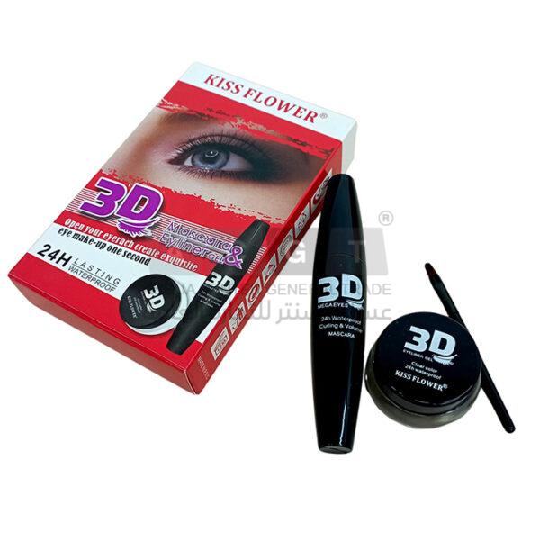 طقم مسكارا وآيلاينر جل أسود اللون من KISS FLOWER