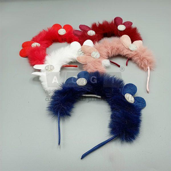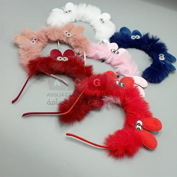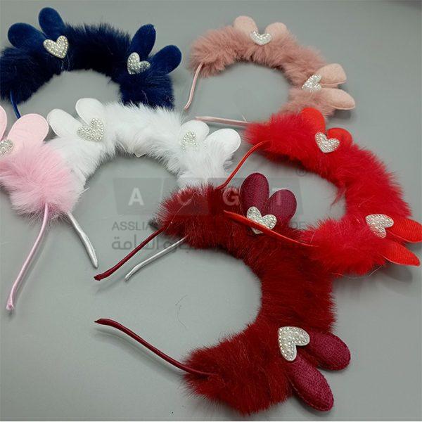 طوق شعر بناتي فرو مع خرز شكل قلب