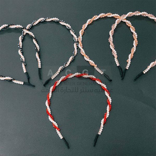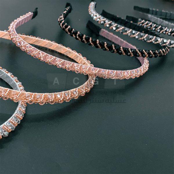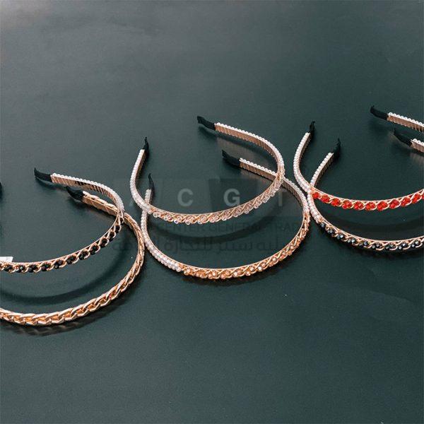 أطواق شعر مخرزه مع صف من الخرز الذهبي