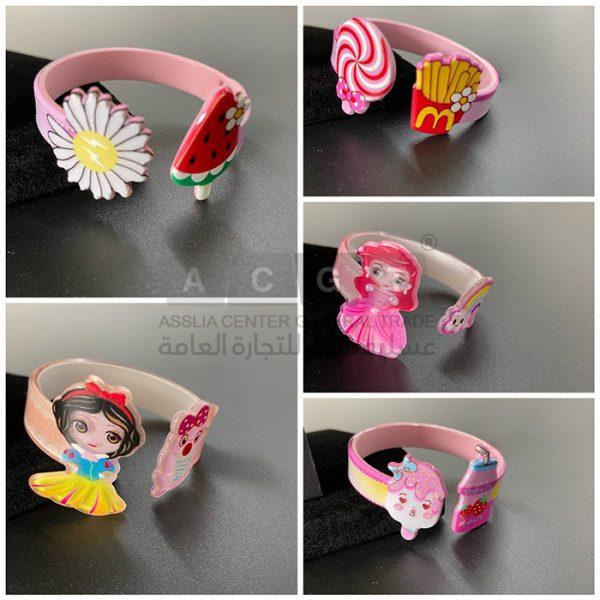 أساور أطفال بلاستيكية مصممة بعدة أشكال