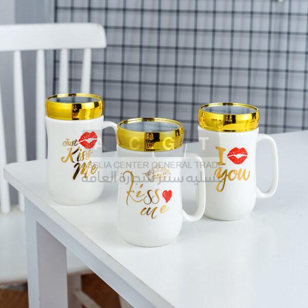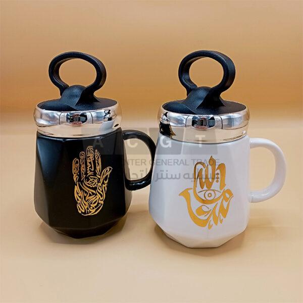 مج بورسلان مرسم بخطوط باللونين الذهبي والكحلي