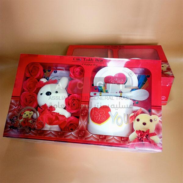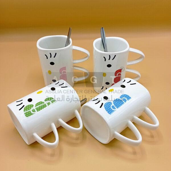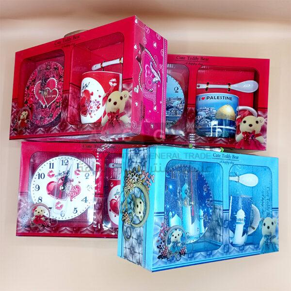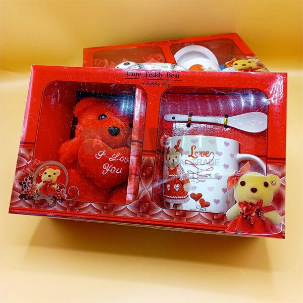 مج بورسلان مع ملعقة وغطاء بالإضافة إلى دب كبير الحجم