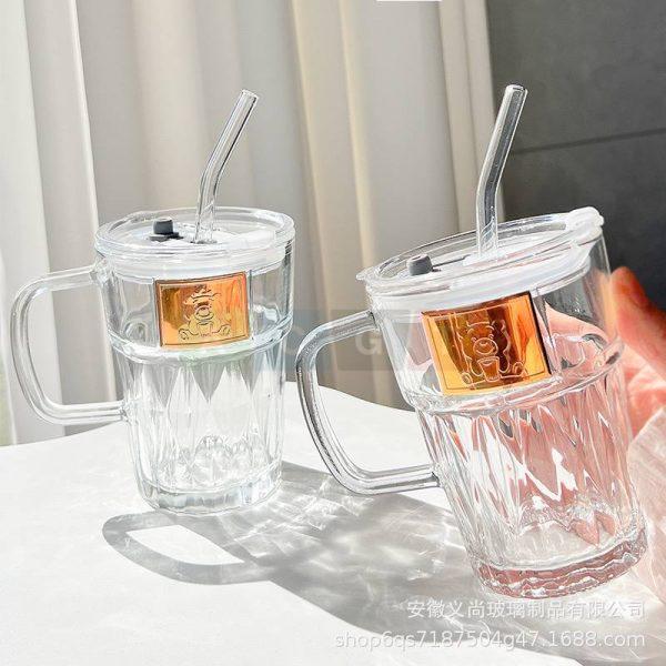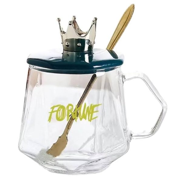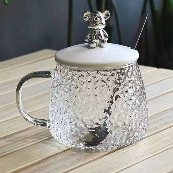 مج زجاجي شفاف مع غطاء عليه دب وملعقة