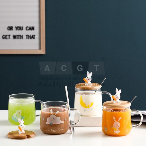 مج شفاف مرسم عليه أرنب