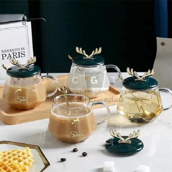 مج شفاف مرسم بالغزلان
