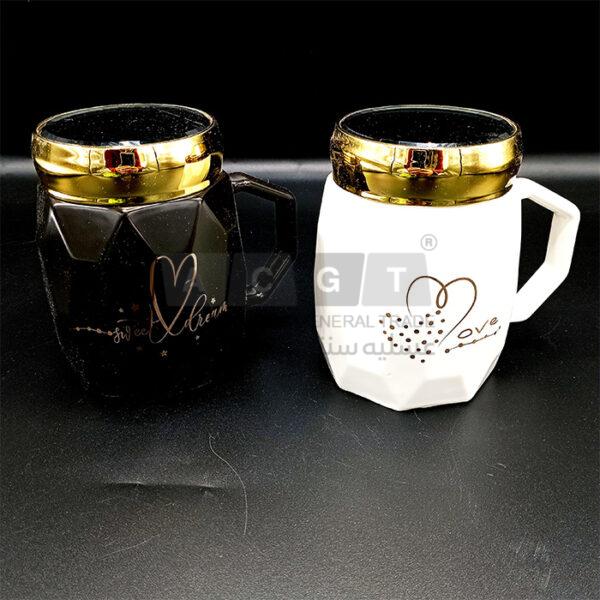 مج سيراميك بكتابات ذهبية اللون
