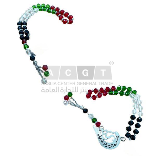مسبحه ملونة بألوان العلم الفلسطيني مع تعليقة علم